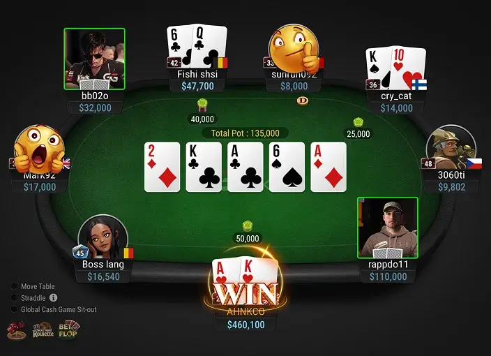 德州扑克以两张底牌搭配五张公共牌组合成最强牌型。在每个下注轮中,玩家必须根据局势变化、位置优势与对手行为做出最佳决定。